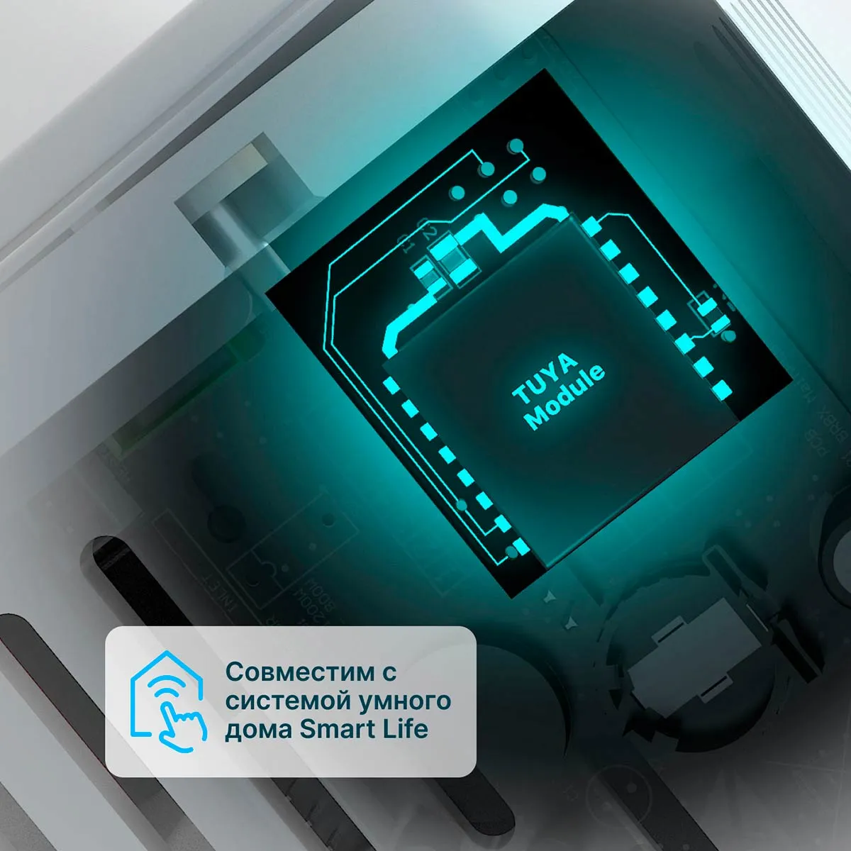 Легкое управление бризером из мобильного приложения Tuya Smart, пультом Д/У и голосовым помощником. Настройка автоматической работы при наличии внешних датчиков.