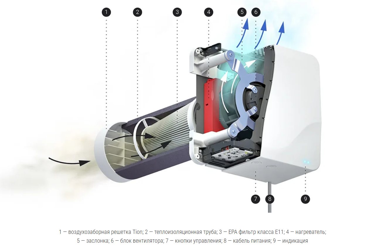 Компактное устройство приточной вентиляции. TION Бризер Lite — пожалуй, лучший суперкомпактный приточный очиститель воздуха с эффективной фильтрацией от пыли и аллергенов, защитой от шума с улицы и управлением со смартфона.