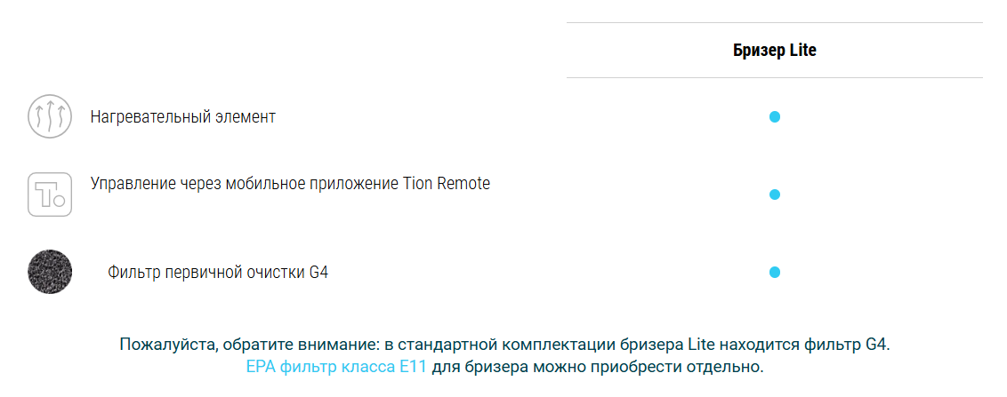 - Фильтр G4 или EPA (EPA фильтр не входит в стоимость прибора и докупается отдельно)