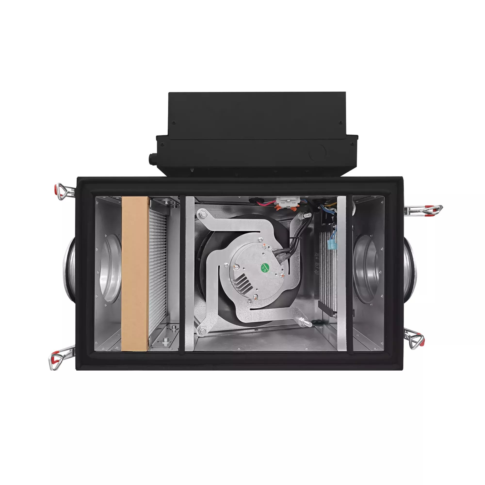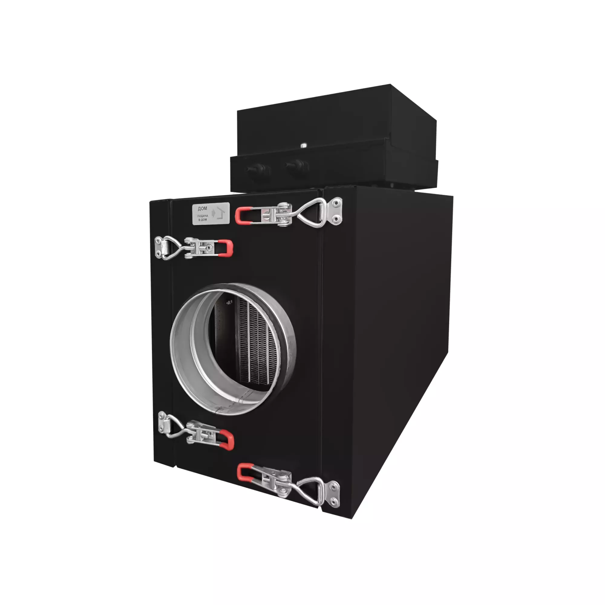 Приточная установка с электрическим нагревателем обеспечивает предварительную фильтрацию, нагрев и подачу воздуха в помещение.