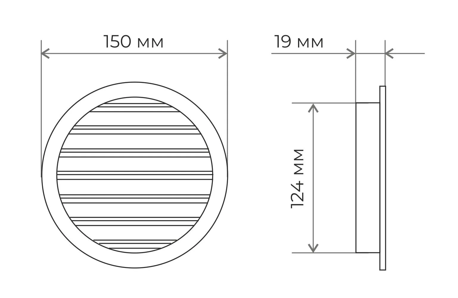 Решетка вентиляционная металлическая d125/D150 мм (серая)