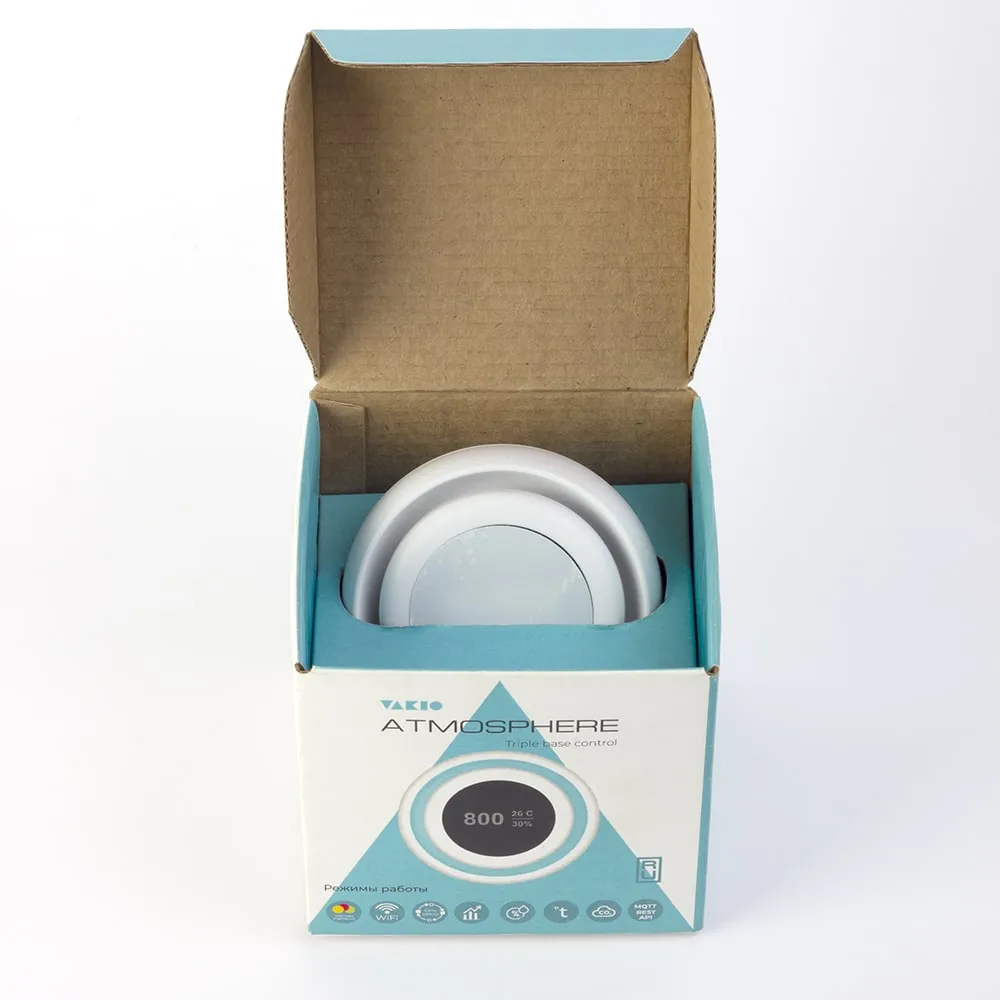 Монитор качества воздуха Vakio ATМOSPHERE - это климатическая станция для измерения температуры, влажности воздуха и уровня углекислого газа. Затем монитор передает эти данные другим устройствам, отвечающим за состояние воздуха в помещении (например, VAKIO Window Smart, Base Smart, OpenAir) и тем самым поддерживает чистоту и температуру воздуха в помещении без вашего участия! Вы можете самостоятельно установить границы, в которых нужно держать показатели воздуха и менять их со своего смартфона с помощью приложения Vakio SMART Control или Яндекс станции Алиса