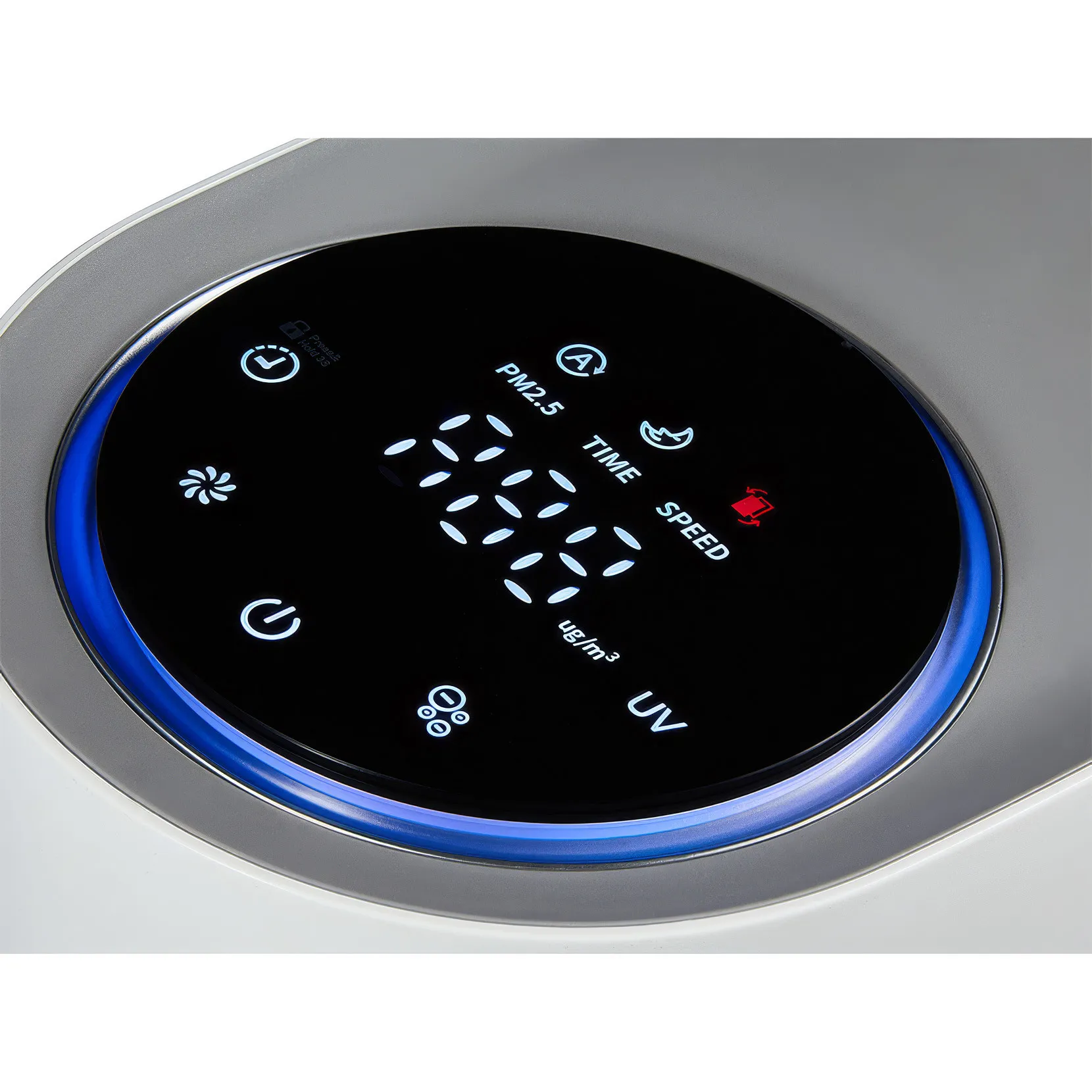 Очиститель-обеззараживатель непрерывно измеряет количество PM 2.5, сканируя воздушное пространство. И при превышении концентрации опасных частиц автоматически включает самый мощный режим эффективной очистки.